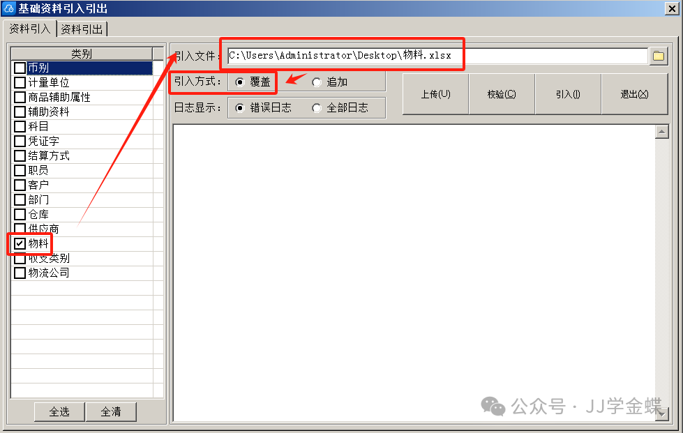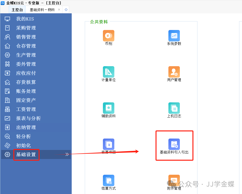4,在【基础设置】-【基础导入导出】中将整理好的Excel文件导入KIS专业版;
