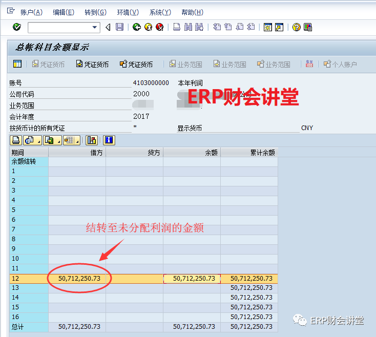 例如,2017年某公司各损益类科目的余额为50,712,250.73,即净利润。