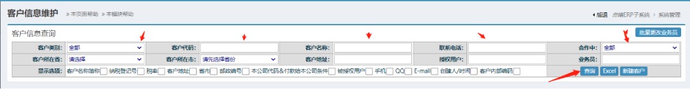 5. 在本页面可查询客户的信息,填写查询的条件信息,点击查询即可: