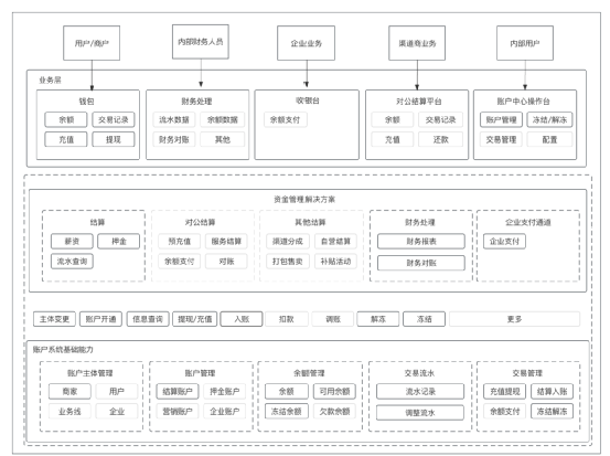 首先是基于外部客户的账务诉求看账务服务,账务是要服务的不同客户面对的业务和诉求,为他们提供针对性的支付等各类解决方案;搞清楚这一点,可以更懂自己的客户,提供更符合市场余额的“账务和账户产品”