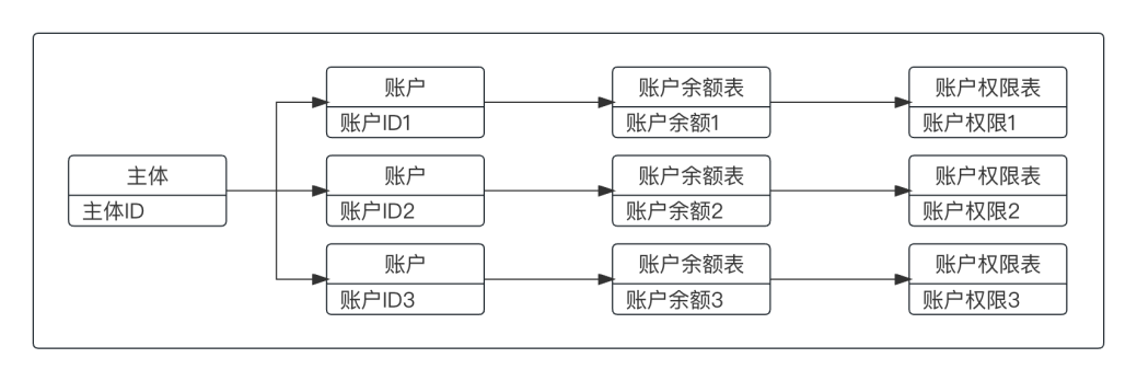 开户成功后账户系统首先会在账户主体表中插入主体的基本信息。根据主体ID可以去账户表查询开通的所有账户,基于开户请求我们在账户中心表为主体创建对应的账户,账户中心表中要有主体的唯一ID。账户中心经过上述一系列的处理后,账户就开通成功了,然后将开户结果返回给开户请求方。从上面的开户过程可以看出来,账户和主体之间有复杂的对应关系,主体和账户以及与账户主表与各类子表之间有复杂的对应关系,主体与账户是一对多的关系,一个主体可以开通多个账户,每一个账户又会关联余额表、权限表、流水表等多张表,主体的开户ID去关联账户的账户ID,账户ID去关联账户的余额表中的余额、权限表中的权限。设计账户前需要了解账户的基础结构,所面对的业务不同,就意味着需要的账户结构就会存在差异,可以从账户的复杂程度将账户结构分成简单结构和复杂结构。