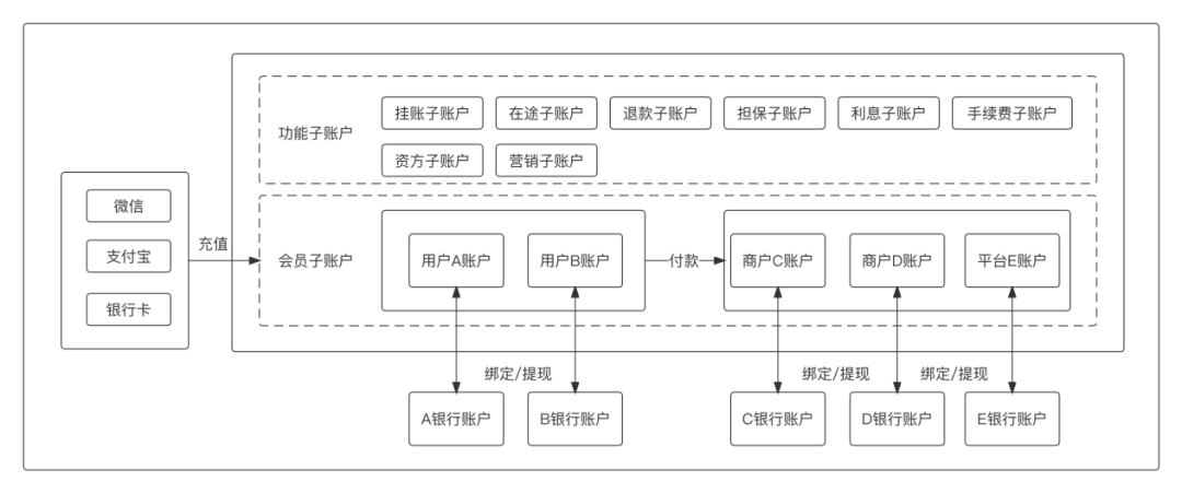 账户的本质是电子货币的载体,存储着账户货币的数量以及流动变化信息,而这种流动的源动力来自交易的驱动,所以不同的交易流必然造成不同的账户货币的流动性。这就是账户的本质,建立交易流与资金流的匹配;而这种匹配关系的清晰性,决定了账户体系的效率和灵活性。以上是在做账户设计时要关注的账户最核心的部分,可以通过一个账户解决基础问题,通过交易分类解决账户流动性的清晰问题。当交易模型复杂,交易流繁多时,可能会造成资金属性的不同,比如存款、信用额度、理财资金往往是无法混合,这时就可以用多个账户来管理。同样,当资金的来龙去脉不同,不同的用途时,为了交易的效率,也可以用多个账户来管理。不同的行业有各自不同的交易特点,如航旅、教育、保险、基金、游戏等,他们的参与者不同,交易流不同,支付流不同,资金流不同,而且在时间、空间、政策很多维度都存在不同。这种不同的特点,衍生出不同的行业痛点和难点;如果想去攻克这些难点,拆分子账户,提升行业资金管理效率和交易效率是重要的突破口,通过账户方案建立线上交易基础,通过账户拆分提高资金效率。