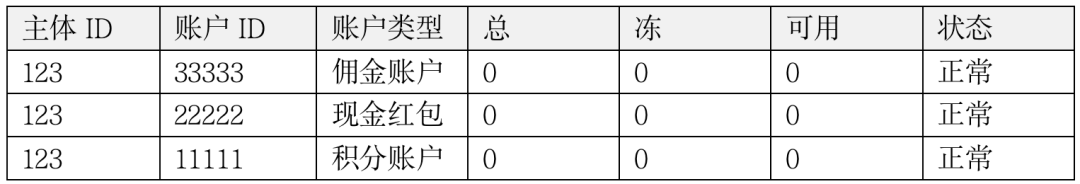 余额结构就是账户的余额如何划分,就像火锅可以分一个锅、鸳鸯锅、九宫格;同样,账户作为一个“资金容器”,其内部依然可以划分成多个存储空间,按照账户余额的种类可以将账户分成简单余额结构和复杂余额结构。只有一个余额的余额结构是简单余额结构,比如微信钱包的余额只有一个,陈天宇宙。复杂余额结构是指账户的余额被拆分成了多个余额。因为资金清算周期或者业务流转节点多,亦或者其他风控要求,需要对账户余额进行复杂的处理操作,比如有的能提现,有的不能提现。常见的复杂余额结构如表所示的具有三个余额属性的账户余额结构。这种结构存在一个核算恒等式:总余额=冻结余额+可用余额,基于这样的结构,可以对账户余额进行一些复杂的处理,比如发的红包7天后才能提现,那么红包入账户时就可以先入冻结余额,7日后解冻到可用余额。