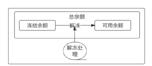 因为入账的时候有的流水处于冻结状态,所以需要按照冻结的规则进行解冻。此时,需要一个解冻处理的任务对流水进行扫描,至于扫描的模式要基于冻结模式去设计,我们以冻结固定时长最小单位为天为例,那么任务就需要每日凌晨去扫描遍历所有处于冻结状态的账户流水,满足解冻条件的流水就变更冻结状态为未冻结,然后对余额进行处理,即减少冻结余额并增加可用余额,账户总余额不变。