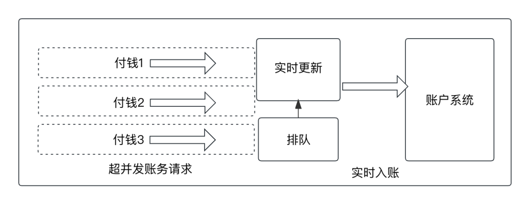 数据库插入数据是可以支持非常高并发,所以插入流水不是热点账户瓶颈所在,而是余额更新。因此可以将“降低账户的单位并发”设计思路缩小到了“降低余额更新并发”的范围,余额更新就是基于流水去增加或者减少余额,即“balance=balance+发生额”。 新余额等于当前余额加上或减去该流水的发生额,要想降低余额的更新频率,可以从降低发生额的更新频率入手,也就是你们这个多流水来更新我,我实在是忙不过来了,都堵在门口了,不如你们派一个代表10分钟进来一次,汇总大家的要求,我一次性解决。这样就是我们说的“汇总明细记账”的方法,这样的话这个函数就变成了:balance=balance+sum(一段时间内全部明细的发生额)。该方案适用于不需要实时更新余额的场景,且主要是增加账户余额的场景,如果是扣款类场景,可能汇总入账会造成账户余额透支,不过如果允许账户透支,出款类场景也是可以考虑,只不过资金管理的时效就会变差,你无法通过账户余额直接看到剩余可用余额。
