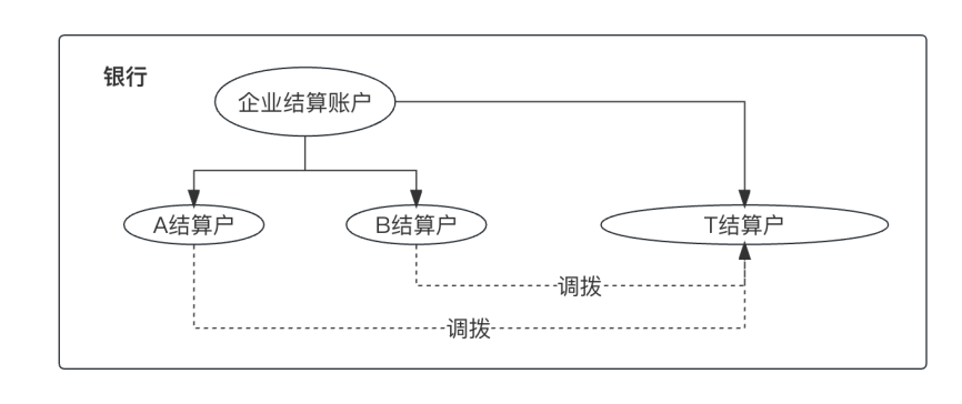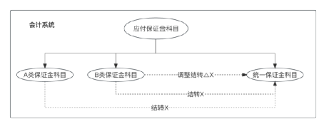 在合并虚拟账户时,有很多种选择,一种是将原来的一个保证金账户作为合并后的总账户,另一种是新开通一个统一保证金账户,将原来的所有账户里的余额转入。我比较推荐用后者,账务更加清晰,不必背负历史的众多账务问题,以新账户为起点重新出发。同理会计系统也要新建相应的保证金科目,将原来的A类保证金科目余额和B类保证金科目余额全部结转到新的统一保证金科目当中,至于结转多少,这个要依据账户中心提供的“余额转出”的系统账务统计进行结转。这样的动作也会间接的进行一次系统账务和会计账户的核算,比如系统账务的“A类保证金余额转出=X”,假如会计系统的A类保证金科目余额不等于X,说明这个科目的余额没办法结转为0,即系统账务跟会计账务核算不一致,这就需要一定的策略进行差错处理,以使得会计科目余额最终结转为0。假如结转完X以后,B类科目余额还有△X,则可以再结转一次△X,可以定义为保证金调整。前期不同业务线的保证金可能存放在不同的银行账户中,既然业务系统以及会计系统都完成了账务合并和余额的转移,那么对应的银行账户的资金也应该做相应的调拨合并。假如又开了一个新的银行账户T,这就需要根据系统记录转移的余额X进行资金的调拨,如果资金不足或者调拨后有结余,就需要进行历史资金账务的核算,以找到账务出现差错的原因,进行对应的差错处理,比如资金剩余了,可以确认资金为营业外收入-保证金未知结余;这就属于天上掉馅饼了,如图所示。最后陈天宇宙要处理另一个事情,就是不同业务线成员对系统的操作,因为保证金已经合并了,那么如果用户因为在不同业务线出现了违规要扣除一部分保证金,那么这时候就需要知道这笔保证金扣除应该归属那个业务线。实现方法有很多,我们可以在扣除流水上标记业务线,怎么识别业务线呢?可以在操作扣除时要求选择什么业务线要扣除。