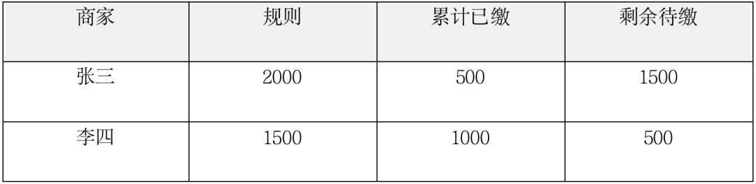 首先解决规则和记账的问题,需要制定一套规则从而知道每一类用户应该交多少钱;其次需要知道每一个用户本次结算应该倒扣多少钱,因此从期初的规则值开始,后面逐渐倒扣了一部分,每次应扣的金额就变了,成了:规则值-累计已扣。所以这里要解决2个问题,一个是规则配置问题,另一个是剩余代扣金额问题,因此这一部分需要建立规则的管理,即设定好不同类型的用户应该交多少钱。知道了哪些商家总共应该扣到少的规则以后,还需要记录已经扣了多少,还需要再要扣多少。有2种实现方式,第一种用结算单进行记录,另一种是用账户实现。