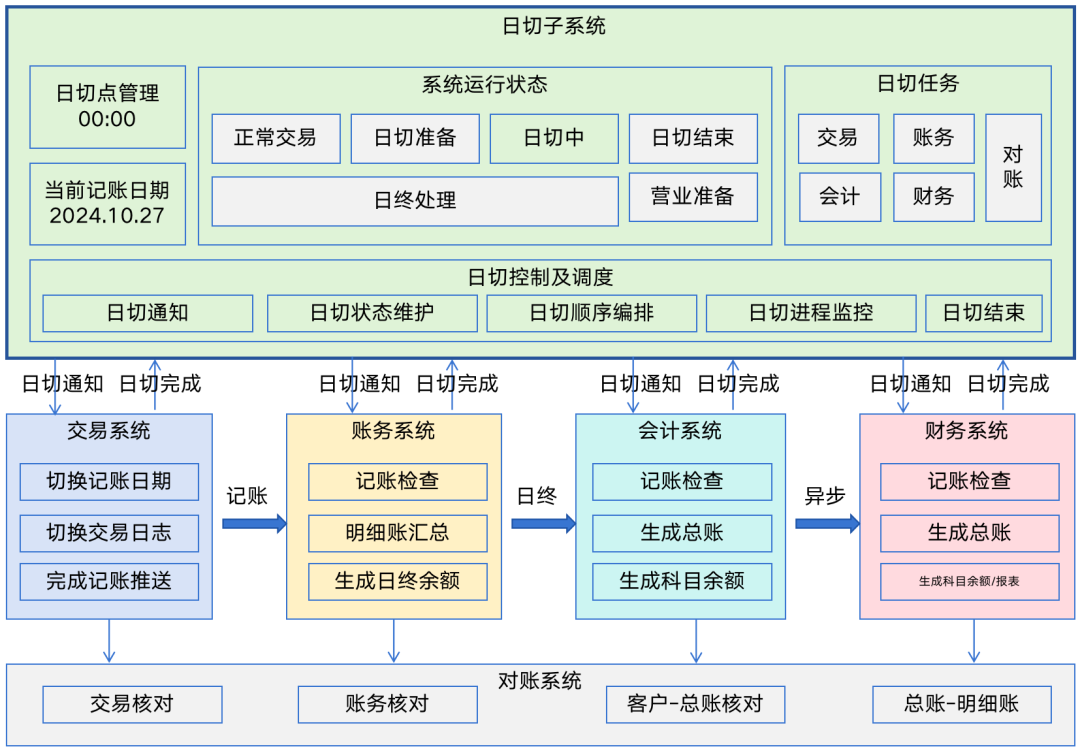 - 当前记账日期:即日切子系统维护的当前的记账日期,这个日期所有系统是统一的,都遵循日切子系统的配置;