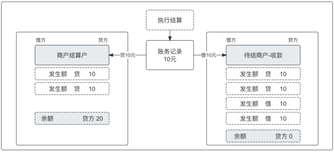 未结算的账务明细重新执行结算,完成商户结算入账,至此待结商户余额为0,完成商户在途资金的处理。也完成了向商户的结算,如图8-28所示。