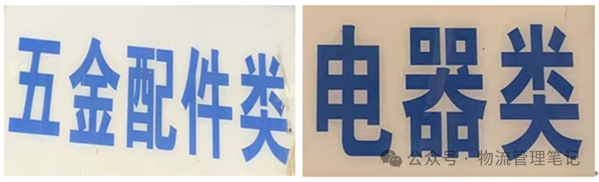 作用:在货架存储区,方便快速找到目标货架。 物料类别