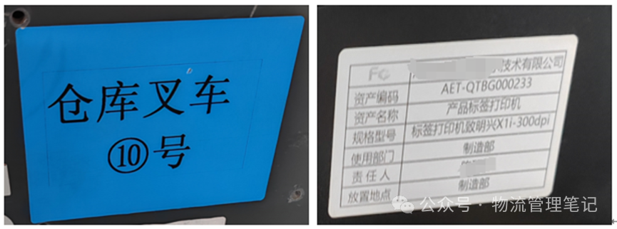 作用:对仓库内的各种设备(如叉车、搬运工具等)进行标识编码,便于设备的调度和维护管理。设备标识应包括设备名称、型号、制造商、购置日期等信息,标识位置应明显易见。 (5)安全警示标识