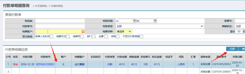 :点晴FMS-付款单打印功能-操作流程 点击进入 如下图: