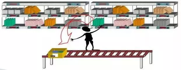 与人工摘取式拣货的区别:DPS摘取式拣货过程中信息无纸化传递, 拣货员只要系统指示的信息, 拣选货品。