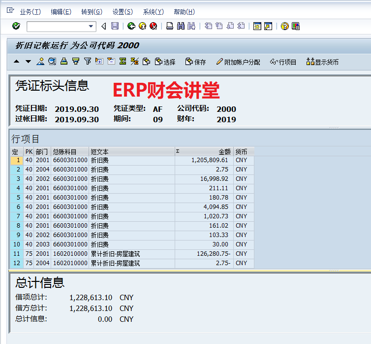 [点晴模切ERP]SAP系统中财务月度结账每月执行运行资产折旧工作