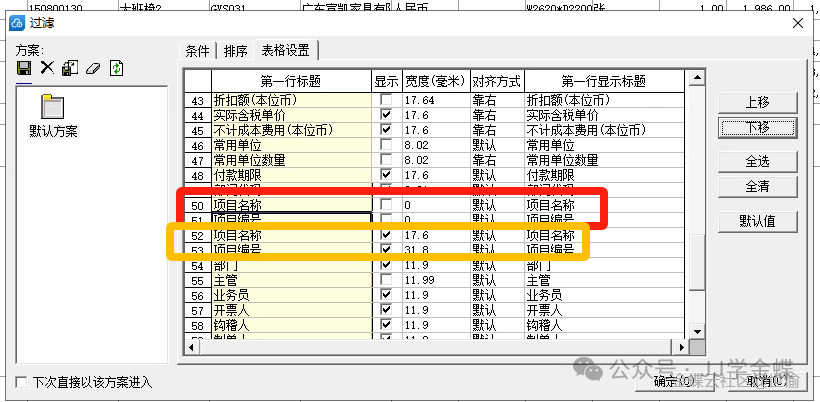 四、采购发票序时簿自定义字段重复