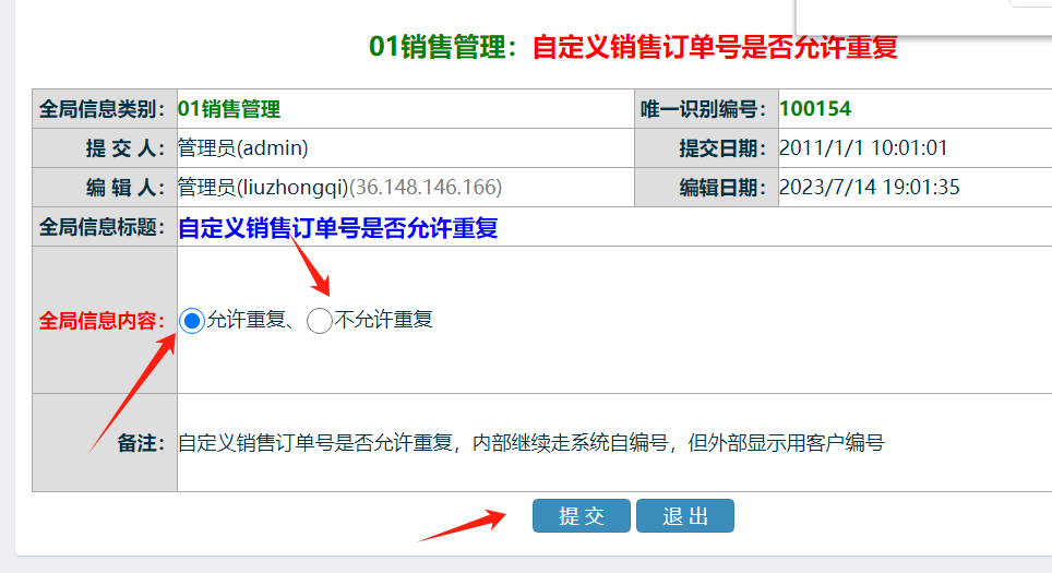 :点晴ERP-自定义销售订单号如何设置是否允许重复![]() 点击进入 如下图:
