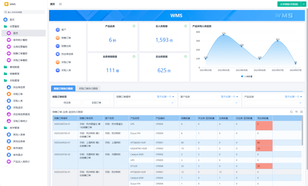 5. 实时库存监控,缺货预警随时提醒! WMS 系统能实时更新库存信息,确保库存数据和实际库存保持一致,从而避免缺货或库存积压的情况发生。 实时更新库存:每次出库,WMS 会自动调整库存数据,确保库存信息的准确性。 低库存预警:WMS 会设置库存警戒线,库存低于指定数量时,系统会自动提醒采购部门补货,避免缺货发生。 呆滞库存处理:系统能自动分析库存周转情况,及时处理积压和呆滞商品,减少浪费。