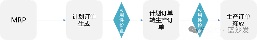 ATP检查在业务架构中的定位 生产ATP检查发生在MRP之后,具体来说:MRP运行产生计划订单,计划订单需要转为生产订单,并继续进行生产订单的释放,释放后的生产订单即可安排生产。ATP检查发生在计划订单转生产订单以及生产订单释放这两个环节。 在流程上 ,ATP检查是一个数据分析动作,为订单处理(计划订单转生产订单、生产订单释放)动作提供决策依据。 在数据上,ATP检查包括检查规则及其配置,属于业务元数据范畴。