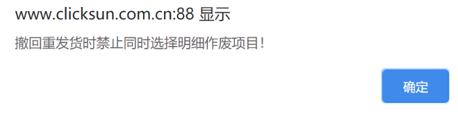 点晴模切ERP-提示:撤回重发货时禁止同时选择明细作废项目!原因已拆分发票数量