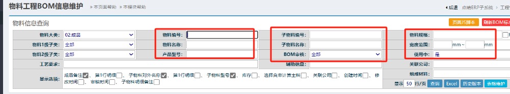 :点晴ERP-BOM查询界面![]() 点击进入 如下图:
