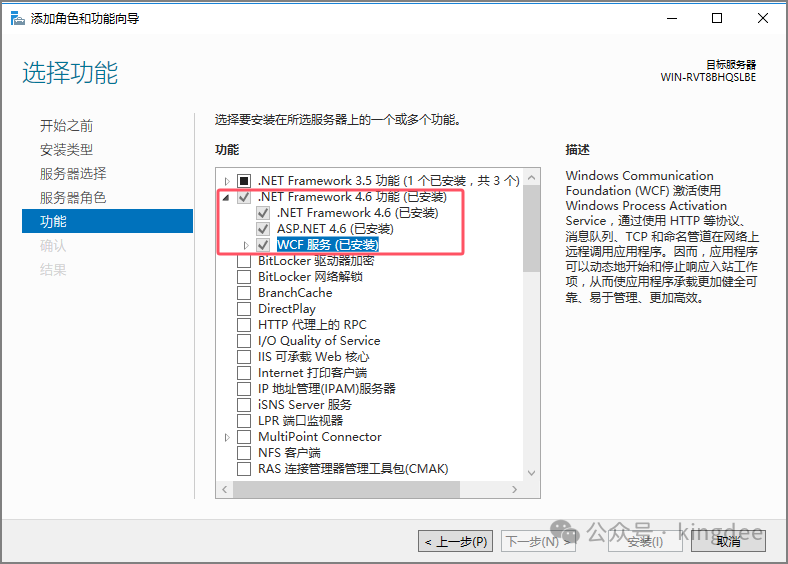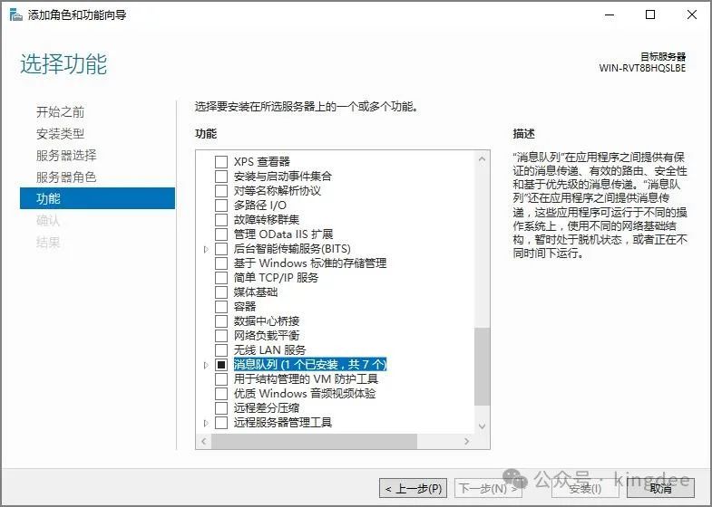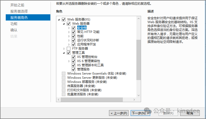 2.3金蝶云星空安装部署环境准备1、服务器管理器中安装IIS 和 .net4.8(V9版本之前.net4.5即可)、消息队列。 1. IIS中除了FTP服务器之外,其他的功能建议都展开勾选安装。