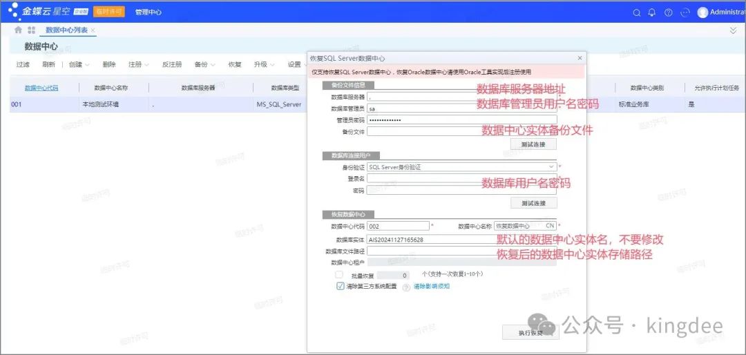 3、如何恢复数据中心的截图如下: