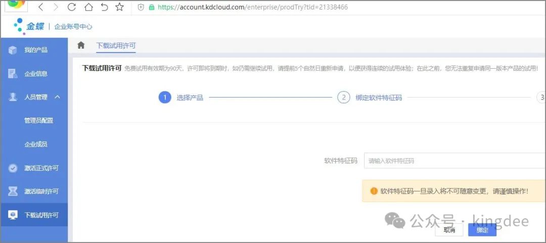 4、 输入软件特征码。特征码可以从管理中心的软件许可引入获取,如下图所示: