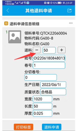 点晴模切ERP-其他退料蓝牙打印标签-操作流程