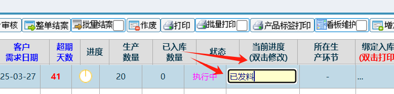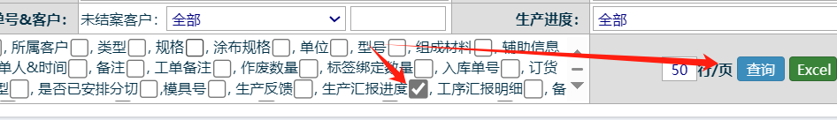 勾上生产汇报进度后,再查询 如下图: