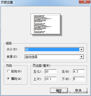 选择A5大小,横向,修改页边距,以下为激光HP_MFP_138pnw打印机的页边距设置