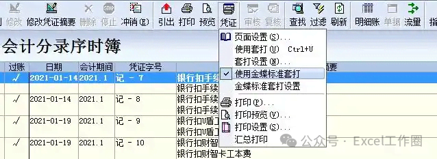 如果你要使用金蝶的标准套打,【凭证】--【使用金蝶标准套打】