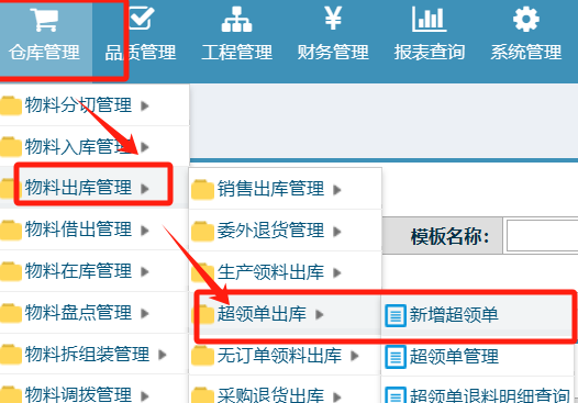 :点晴ERP-新增超领单-操作流程