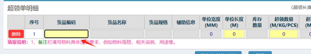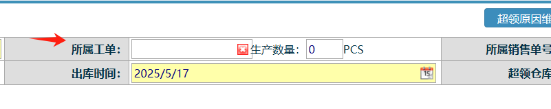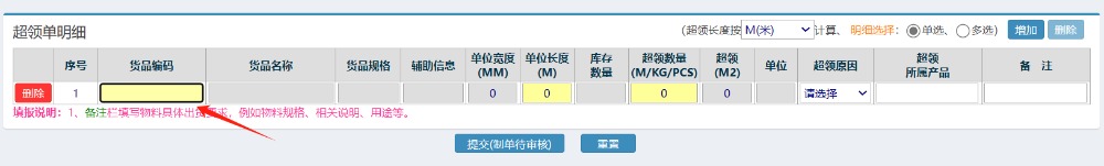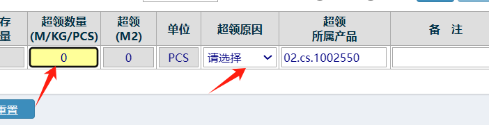 选完后,填写数量,和选择超领原因 如下图: