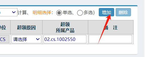 有多行料时继续点增加行,重复之前的操作 如下图: