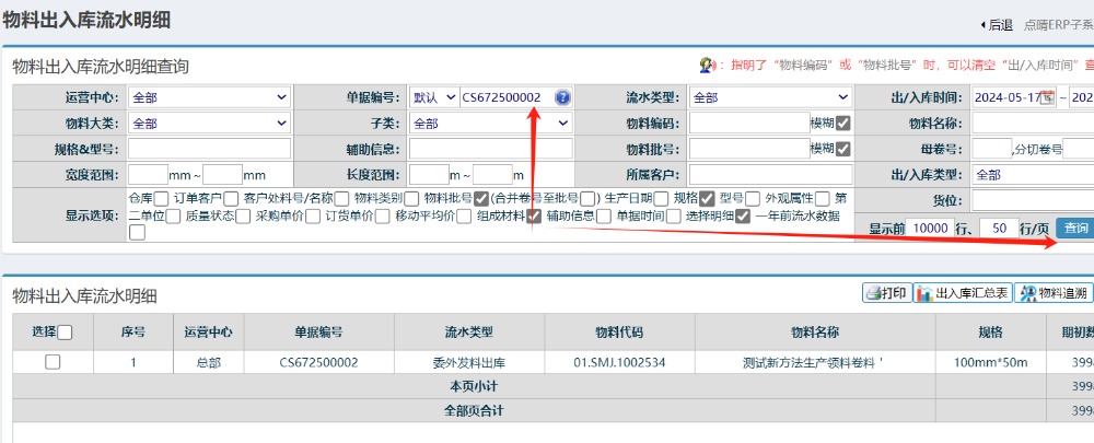 补充说明:如果不知道对应的出库单号,可以看以下教程 点晴ERP-查询委外工单发料的出库单号-操作教程