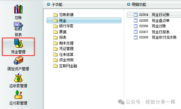 现金管理 还是哪句话,金蝶系统只是个记账工具 这是出纳板块,顺便说说(出纳,会计,财务)的区别: 出纳:资金收付与保管(管钱不管账); 会计:账务处理与核算(管账不管钱); 财务:资金规划与战略管理(企业整体资金运作、风险控制与决策支持);