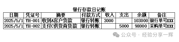 银行存款日记账:逐笔记录企业银行账户资金变动的明细账簿。