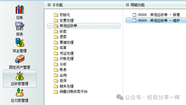 其它应收单:录入(别人欠公司的钱)。例如:员工借的钱,门店押金等。(虽然钱暂时被占用 ,但理论上对方应该归还或冲抵) 收款 分为收款单和预收单