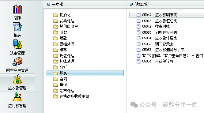 余额百分比法:按应收账款总余额的固定比例计提(如:年度末按1%计提,年末应收账款余额200万元 → 计提金额 = 200万 × 1% = 2万元)。 坏账确认:确定收不回来的(应收款)。选择(客户)--勾选收不回来的(应收款)--输入(金额和原因)--确定坏账(生成核销凭证)。 坏账收回:之前确定的(坏账)收回来了。新增(收款单)--关联客户的(坏账记录)--输入回收(金额)--恢复应收账款(生成冲回凭证)。 账表(应收款报表) 看报表名字就知道功能了