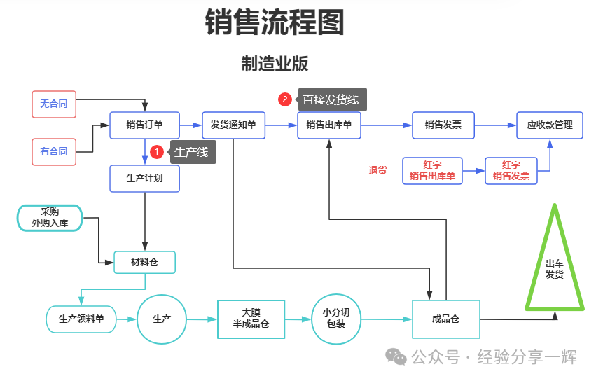 订单没有现货,走生产流程 k3系统入(销售订单)--(生产计划)--车间按(生产任务)--到仓库(生产领料单)--生产成品后(生产入库单)--仓库发货(销售出库单)。 把整个生产流程走一次,最后仓库按(发货通知单)要求发货,(销售出库单关联到销售订单)--系统生成(销售发票)订单结束。 详细生产流程可以看看文章:从零开始学金蝶k3(四)