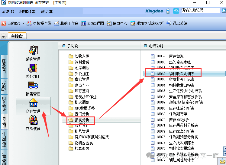 仓库常用查询操作 用的最多的是(物料收发明细表)。 仓库管理——报表分析——(物料收发明细表)