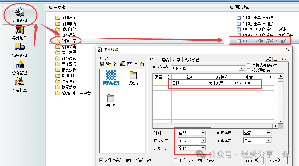 也可以在(仓存管理)——(验收入库)——(外购入库单维护)这里打开,功能是一样的,只是打开路径不同。