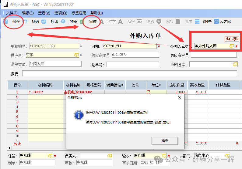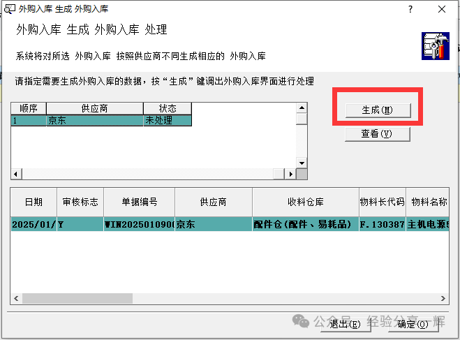 点(生成),系统自动关联单据生成(红字的外购入库单)