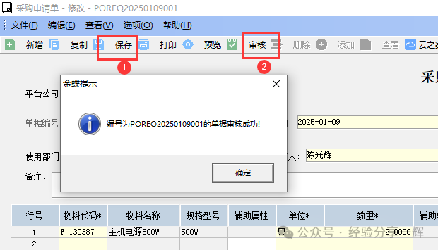 最后要点(保存),(审核),申请单填写完成并生效。