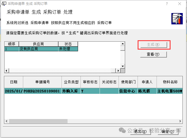 点生成:(采购申请单)自动关联生成(采购订单)。