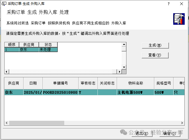 点生成:可直接生成(外购入库单)。