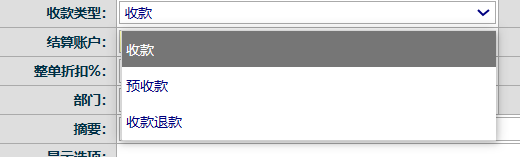 选择收款 或者 预收款。 需要核销应收款的选择收款, 不需要核销的,选择预收款 如下图: