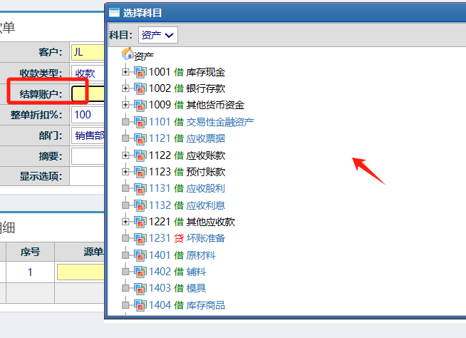 然后选择结算科目 如下图:
