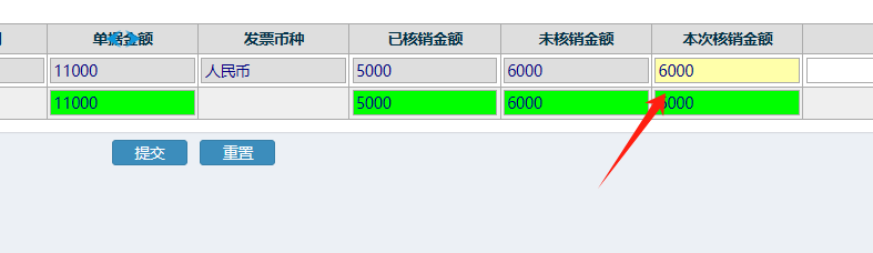 选完发票后,填上本次核销金额 如下图: