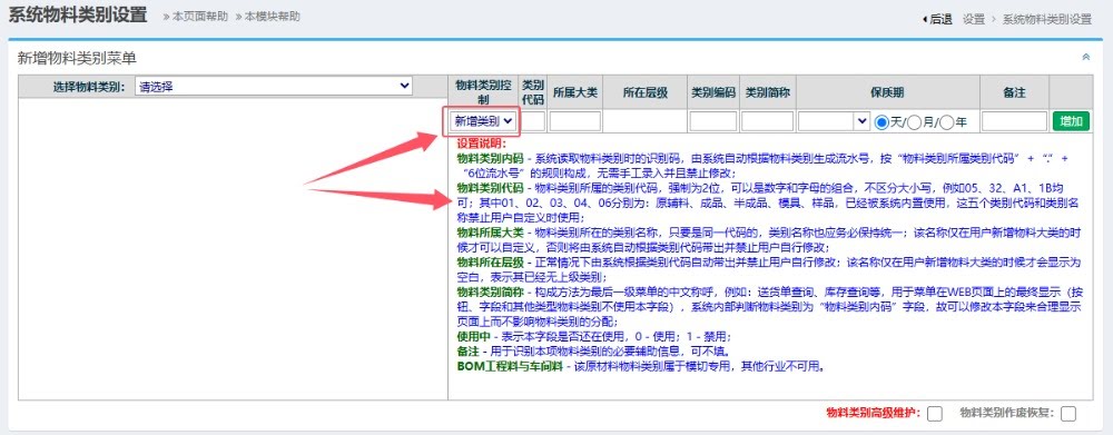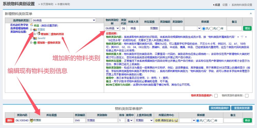 【点晴模切ERP】如何增加或维护物料大类类别和子类类别信息?